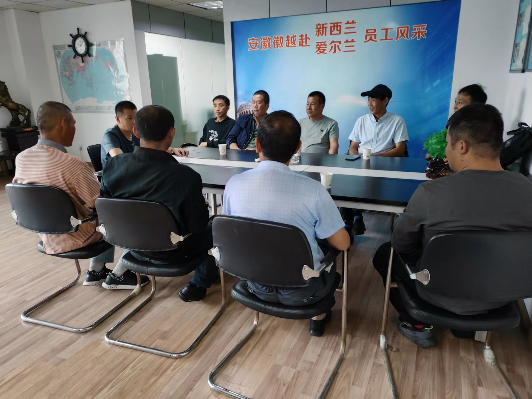 出國(guó)人員公司大廳開(kāi)會(huì)